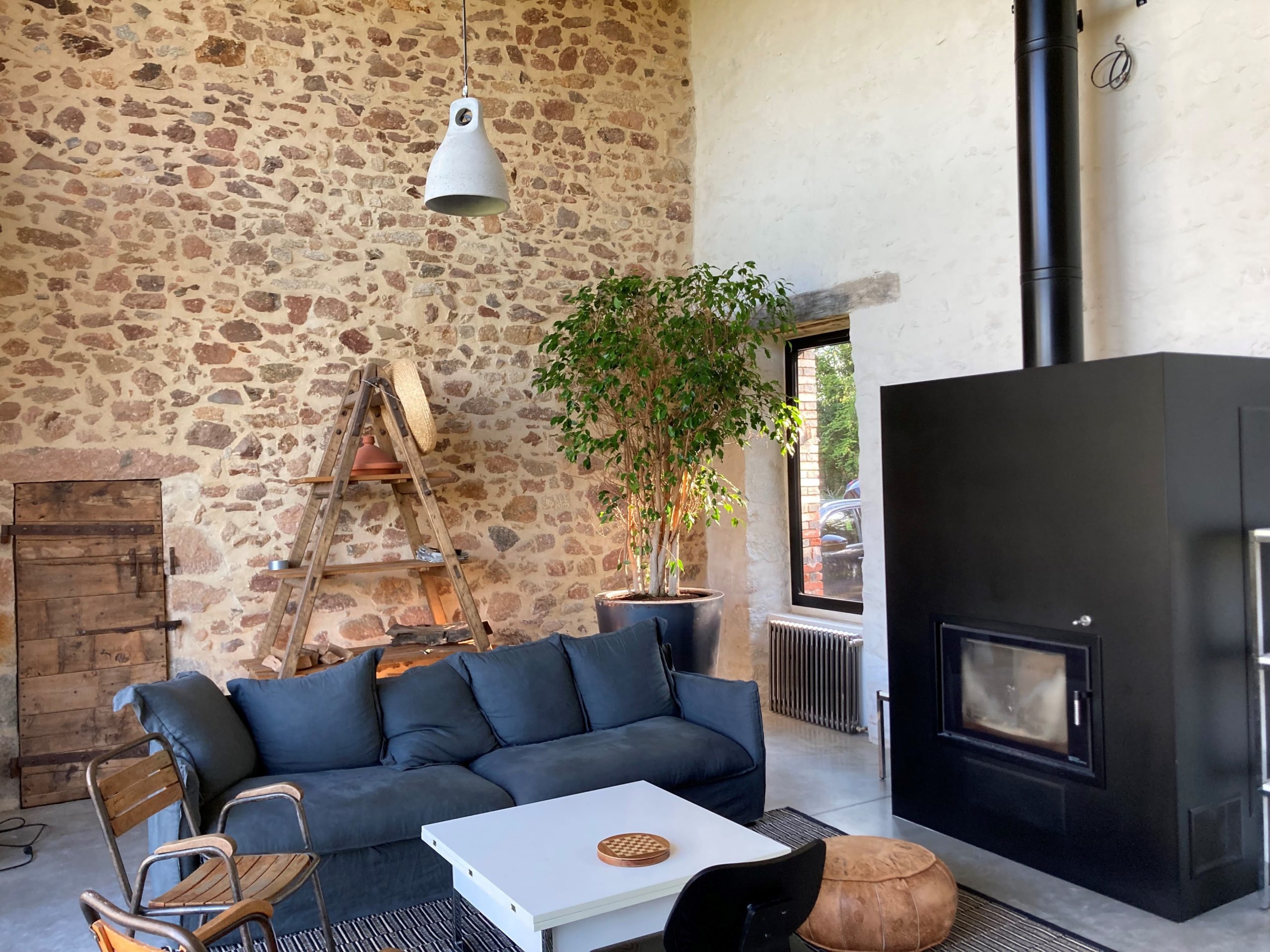 L’ensemble de la décoration est destiné à conserver le charme de la pierre, en le combinant à des matériaux modernes et industriels.